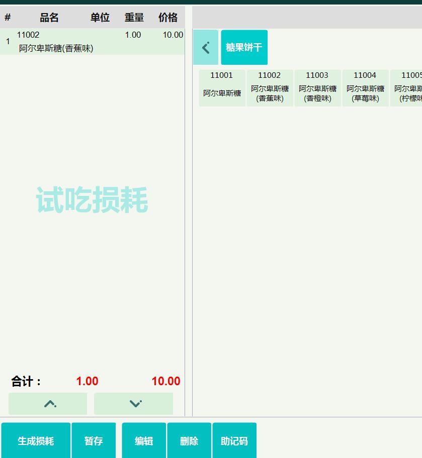 门店根据当天的推广、天气和库存等情况做随机挑选试吃商品。秤心管家8 试吃报损管理,只需将挑选的试吃的商品放在秤上,生成试吃损耗就可以完成试吃管理。