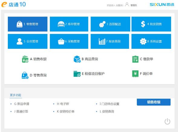 思迅 e 店通管理系统10是深圳市思迅软件股份有限公司在多年行业经验的基础 上,结合 200000 多家客户的实际需求和国外先进的管理理念而设计开发的,专门针对连锁便 利店企业的现代化信息管理 系统。 本系统以界面直观、易学易用、功能全面、系统稳定为主要特点,支持连锁及多业态 经营管理模 式,能从根本上满足现代商业企业的管理高效、分析精确、降低成本的要求,帮 助企业实现物流、信息 流、资金流的科学管理,为企业提高自身竞争力奠定坚实的基础。